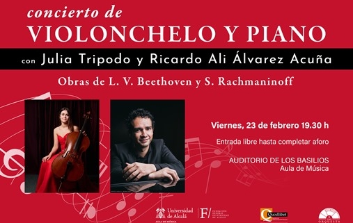 - El próximo día 23 de febrero a las 19:30 horas, en el Auditorio de Basilios-Aula de Música, celebraremos un nuevo concierto en esta ocasión de violonchelo y piano a cargo de Julia Tripodo y Ricardo Ali Álvarez Acuña.